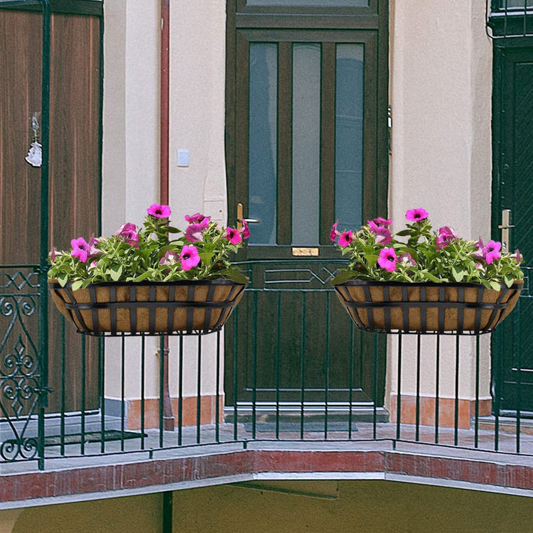 Ashman Trough 1 Pack, Deck Railing Planter Box, Black, Metal Garden Trough Deck Planter with Coco Liners.