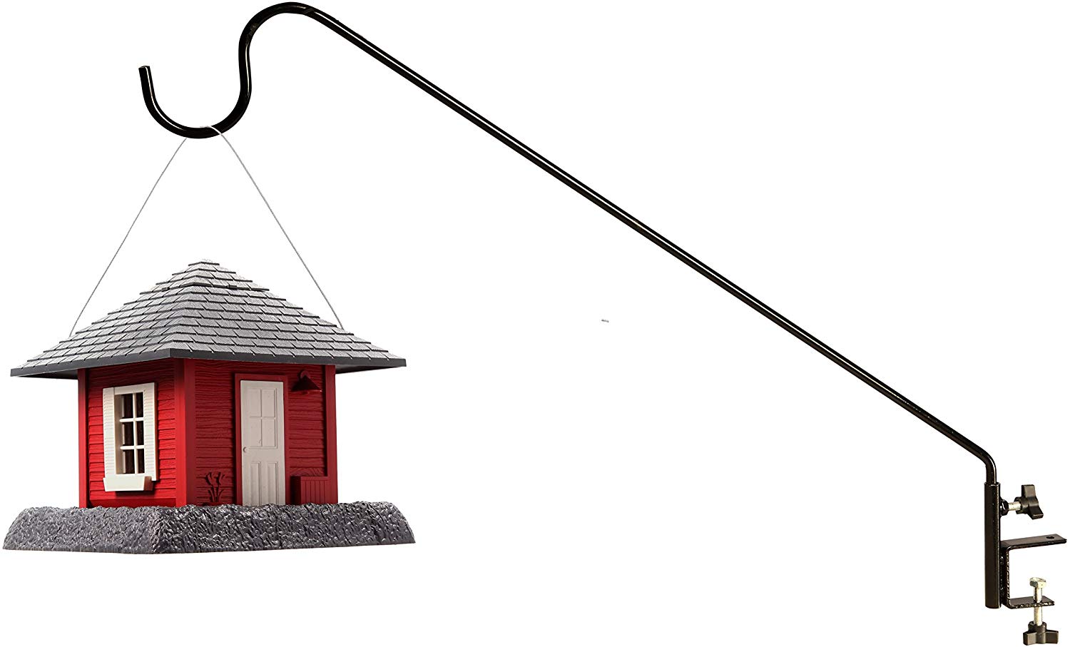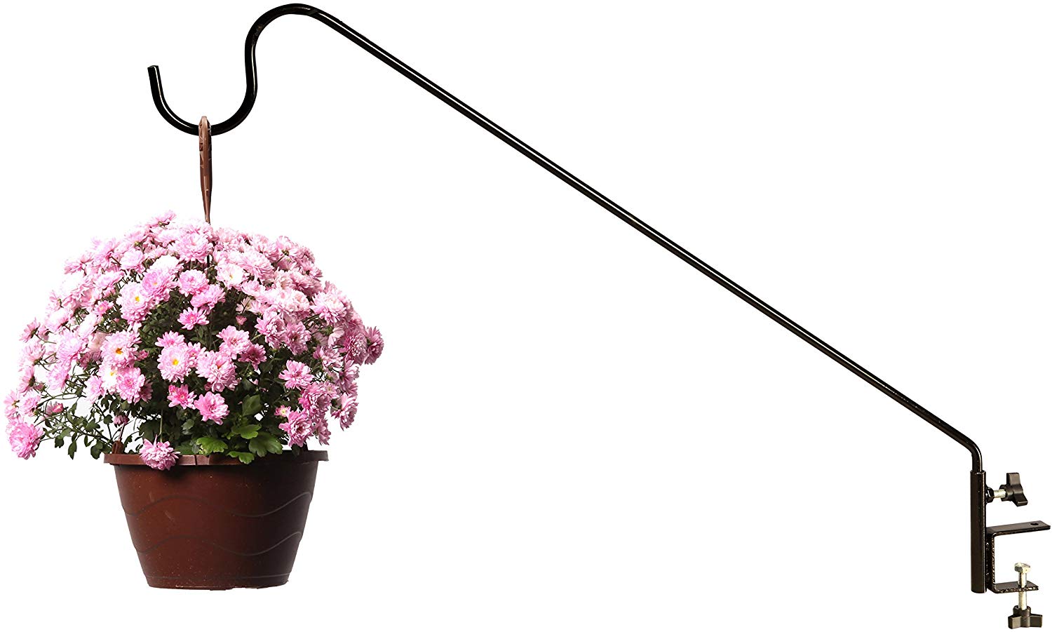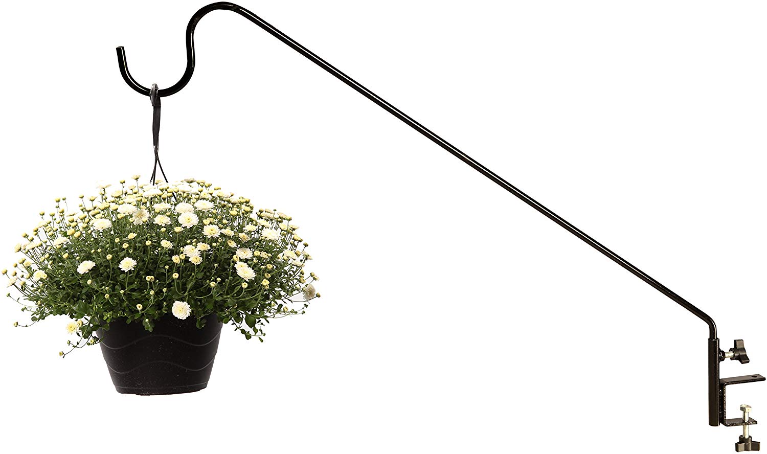 Allows you to easily hang feeders, plants, lanterns, and other accessories from your deck rail The carefully - designed arm arches forward positioning the feeder out and over the side of your deck Premium quality steel that is rust-resistant and durable provides for a long-lasting product Seeds and bird droppings fall away from the deck preventing you from having to constantly clean up messes. No tools are required for installation, simply tighten the hand knob.