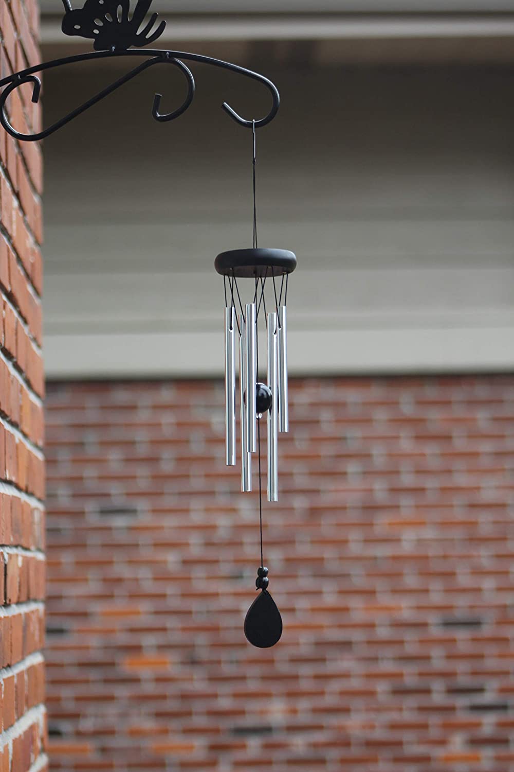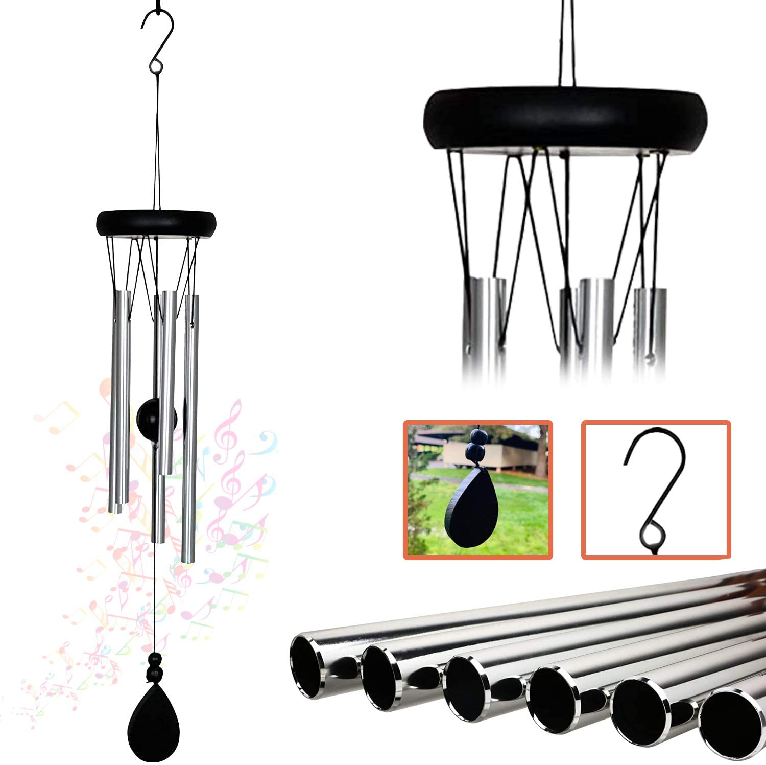 Ashman 20 inch Large Deep Tone Sympathy Silver color Wind Chimes with 5 Copper Vein Tubes - Tuned Relaxing Melody Gift Décor for Indoor and Outdoor.