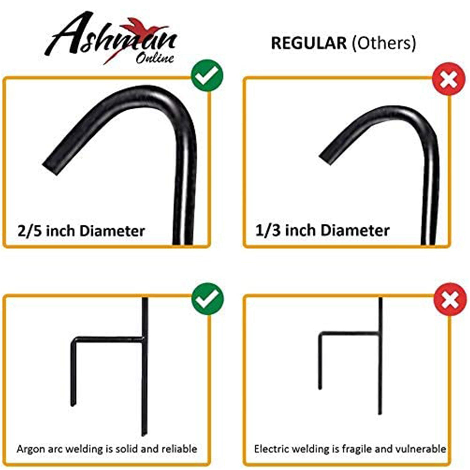 Wondrous ability to effortlessly blend with surroundings and backdrops; providing a breathtaking visual-effect for every beholder! Ashman Superior Quality Promise - We affirm the flawless grade and pristine quality metal used to construct these hooks as genuine works of art! - Able to support light to medium loads as in solar lights or signs with a meticulously designed pole built to last. Easy Assembly!