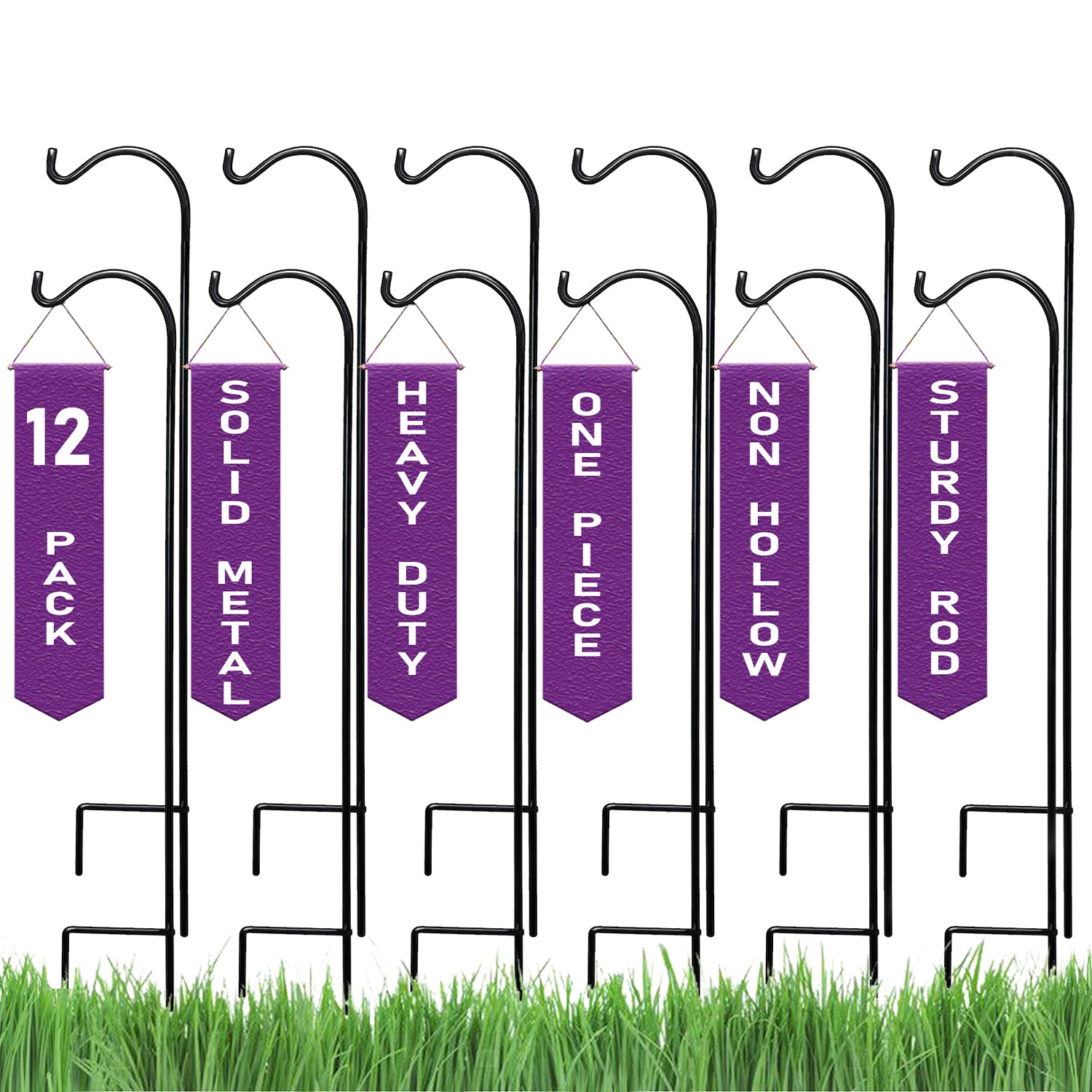 - GREAT VALUE - Set of 12 shepherds hooks and made of high quality durable steel, 37 inches high, 12 inches wide and 10MM diameter. This is a single piece solid metal garden hook which is better quality and great price then most shepherd hooks available and the high number of reviews are testament to our satisfied customer base and you can buy with total confidence