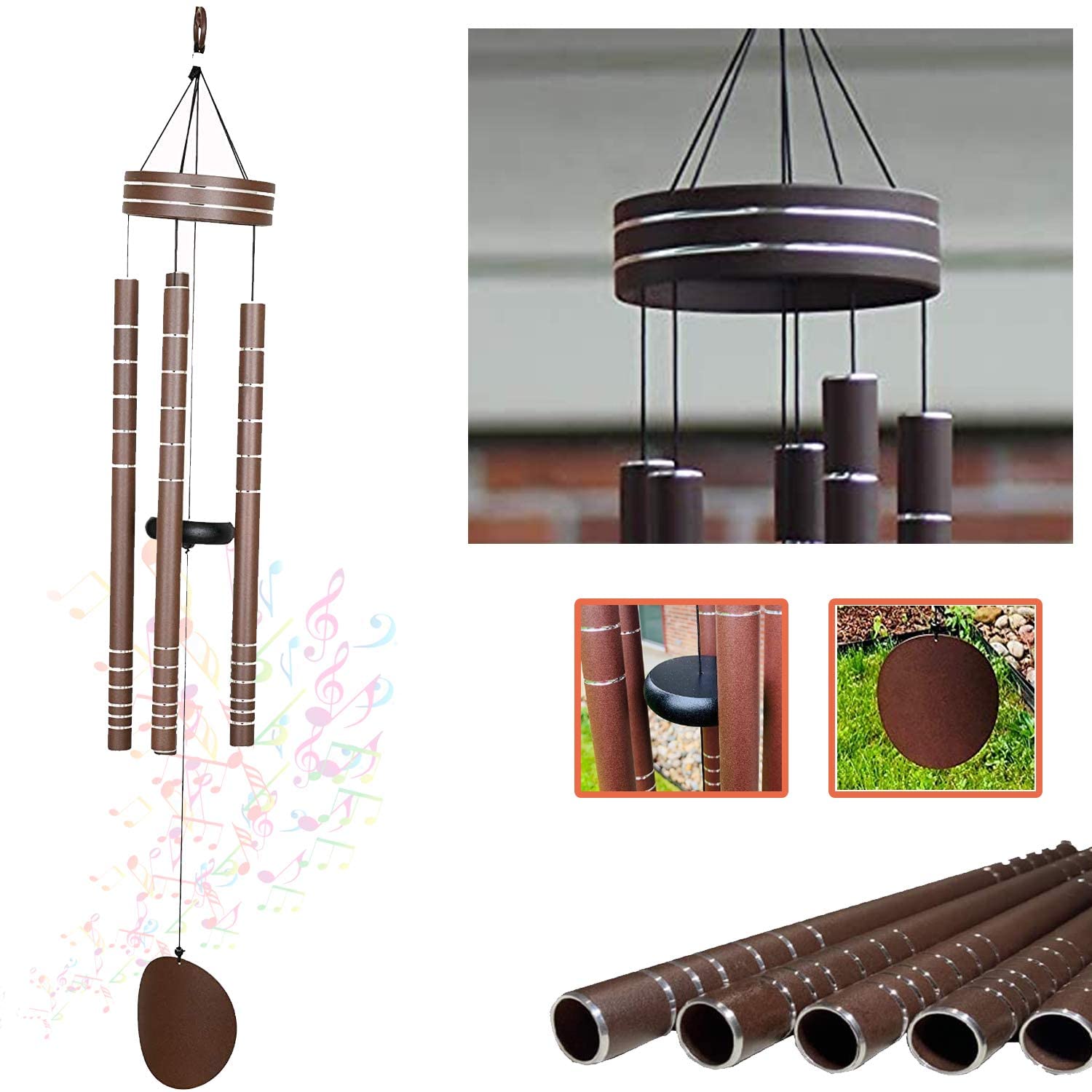 AshmanOnline 40 inch Brown Wind Chimes - Tone Symphony Wind Chimes with 5 Brown Copper Vein Tubes - Tuned Relaxing Melody Gift Décor for Patio, Garden, Home, Balcony, Indoor and Outdoor.