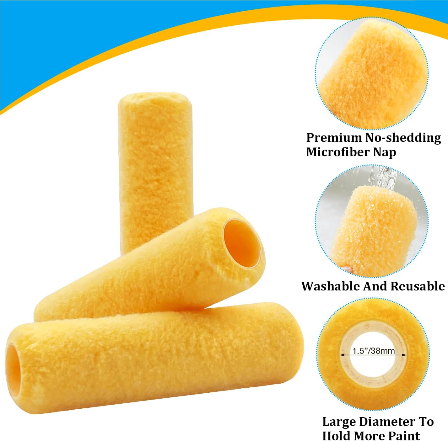 Ashman 9" Microfiber Roller Cover Yellow color – 3/8" Nap (3-Pack)