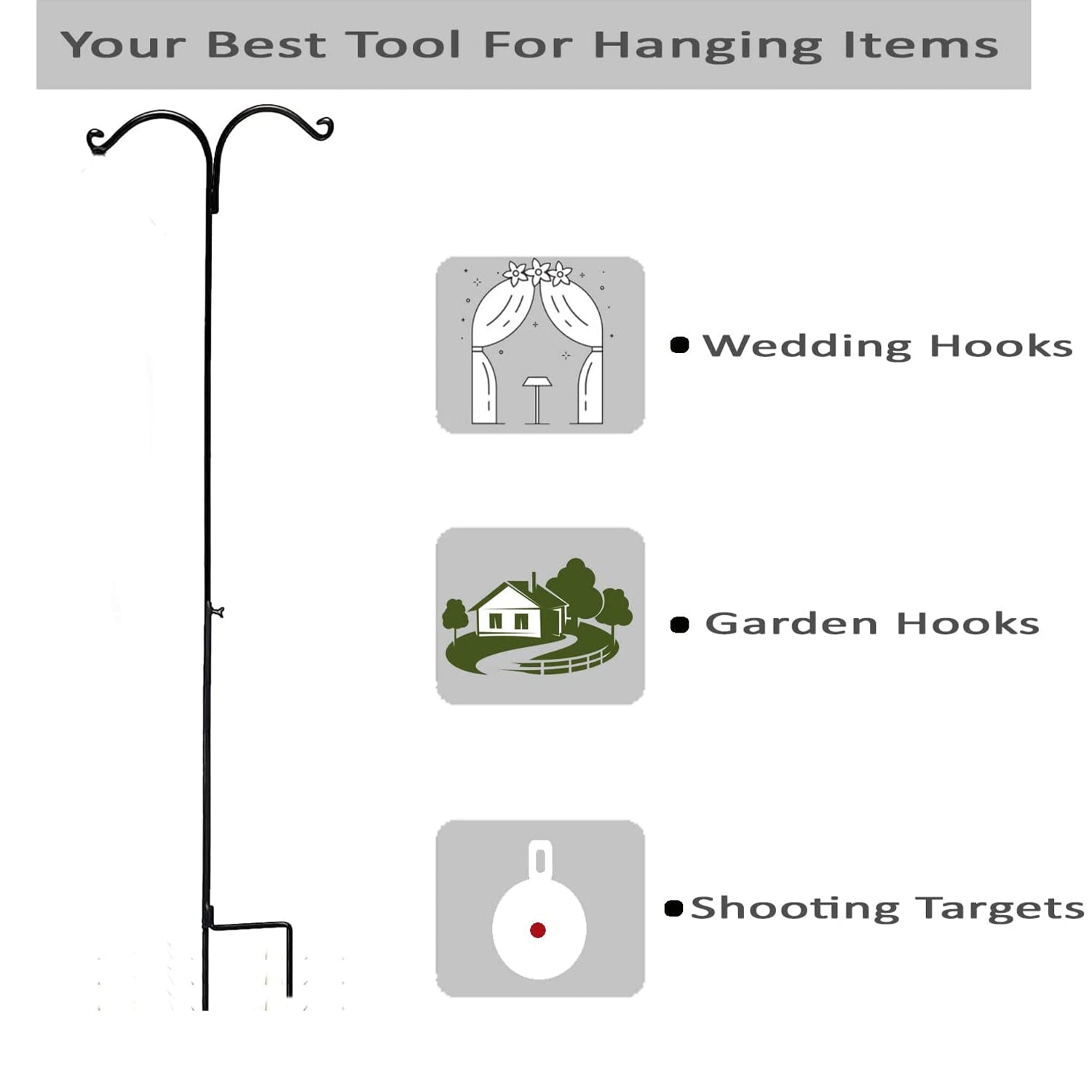 Ashman 91 Inch Adjustable Shepherds Hook with Twin Hooks 5/8 Inches Thick, Super Strong, Rust Resistant Steel Hook for Hanging Plant Baskets, Bird Feeders, Lanterns, Wind Chimes (2 Pack)