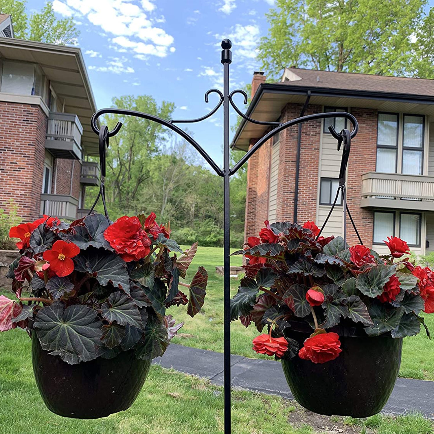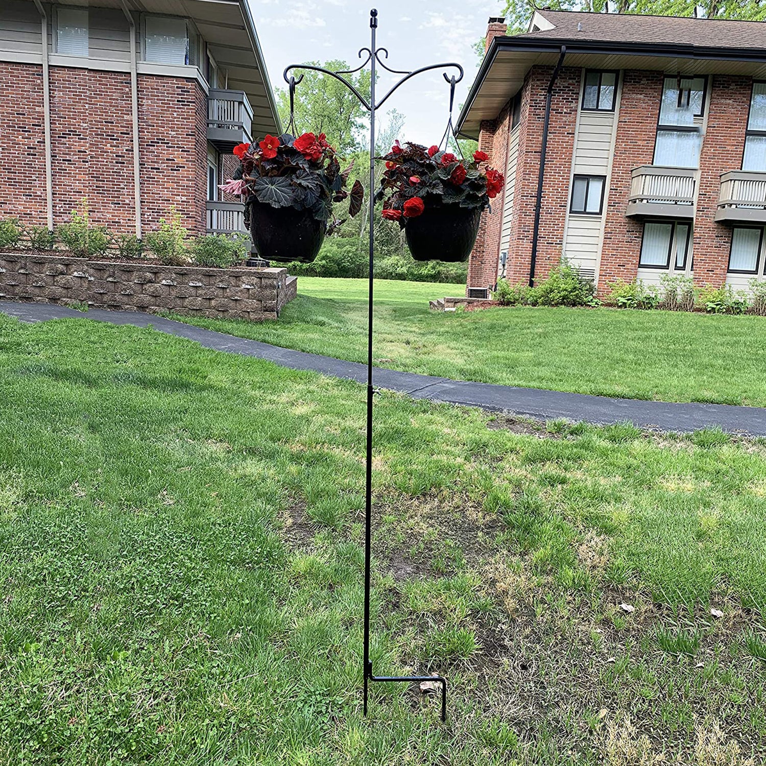 Ashman 91 Inch Adjustable Shepherds Hook with Twin Hooks 5/8 Inches Thick, Super Strong, Rust Resistant Steel Hook for Hanging Plant Baskets, Bird Feeders, Wind Chimes and use at Weddings(2 Pack)
