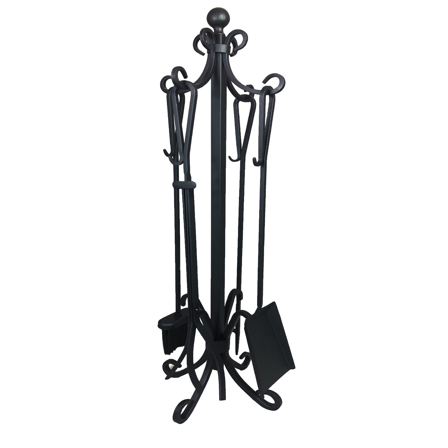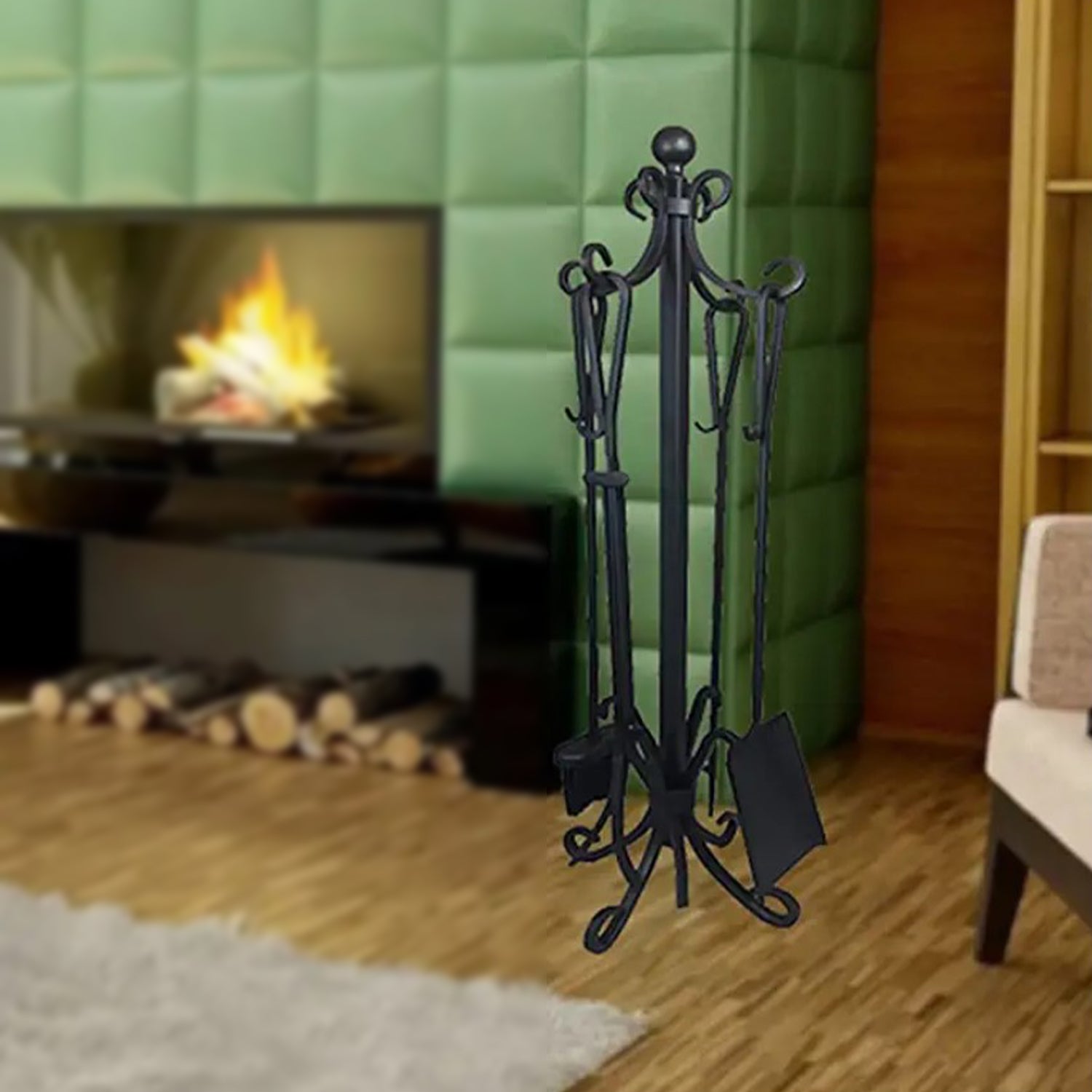 5 Piece Fireplace Toolset – Strong Cast Iron Toolset – Accessories include Tong, Shovel, Base, Poker and Brush.