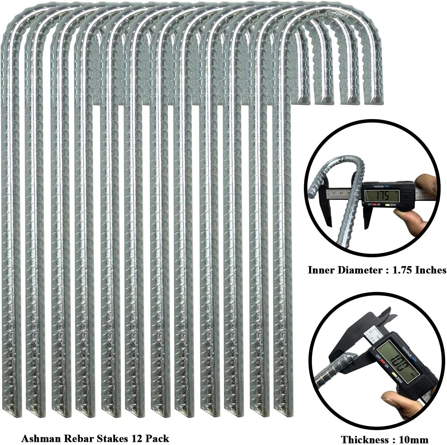 Ashman Rebar Stake Anchor 12 Inches in Length, Ideal for Securing Animals, Tents, Canopies, Sheds, Car Ports, Swing Sets (Reber Stake 12 Pack)