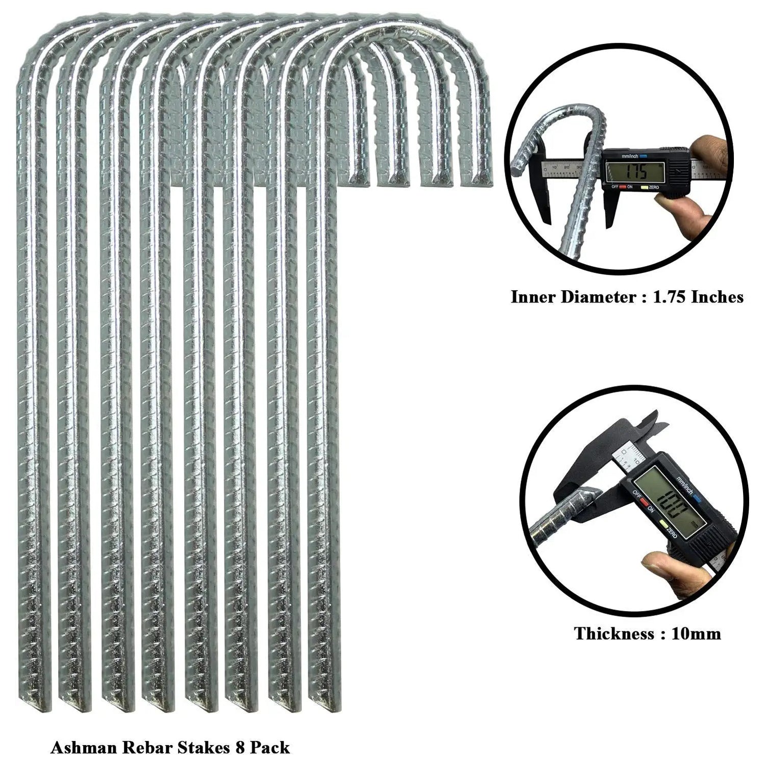 Ashman Rebar Stake Anchor 12 Inches in Length, Ideal for Securing Animals, Tents, Canopies, Sheds, Car Ports, Swing Sets (Reber Stake 8 Pack)…
