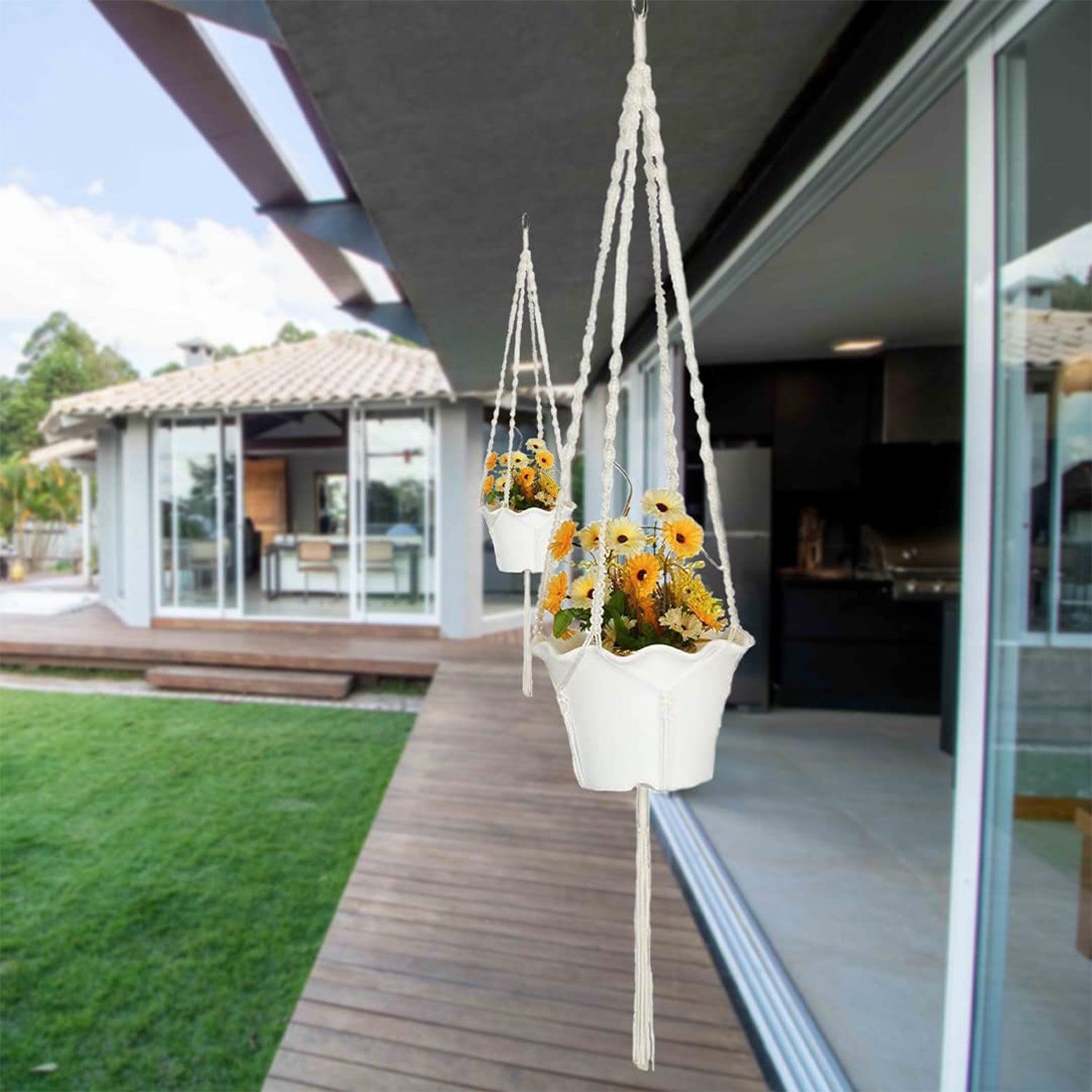 Ashman White Plant Hanger - 2 Pack - Macrame with Silver Ring, Beautifully Handmade Large 4 Leg Arms Used for Round & Square Pots Hanging Basket.
