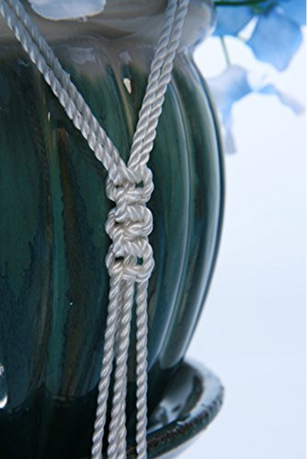 Exceptionally well made, unique and great design for this elegant white Macrame plant holder.