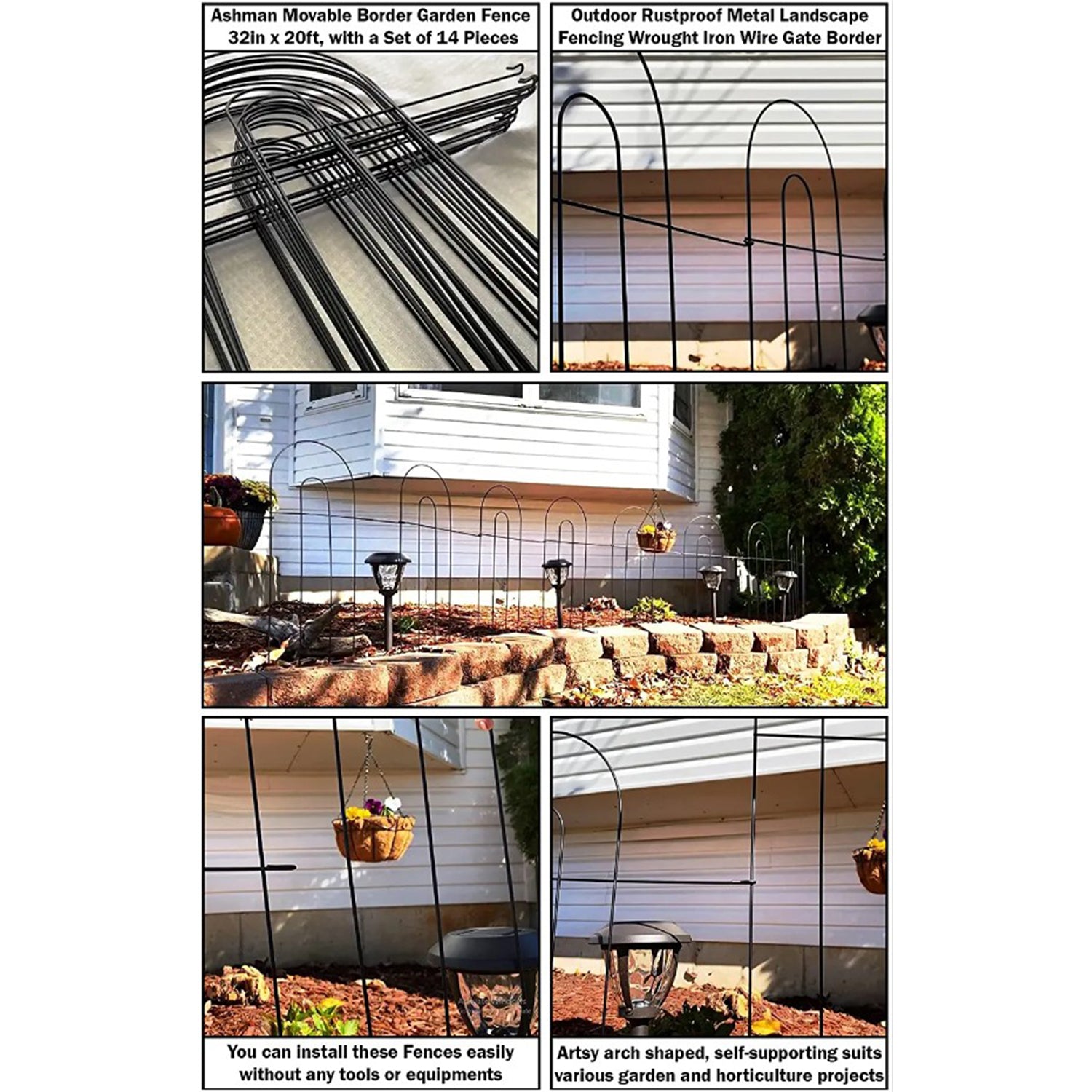 - AshmanOnline Movable Border Garden Fence 32in x 20ft - Outdoor Rustproof Metal Landscape Fencing Wrought Iron Wire Gate Border Edge Folding Patio Flower Bed Animal Barrier Section Edging Black (Set of 14)