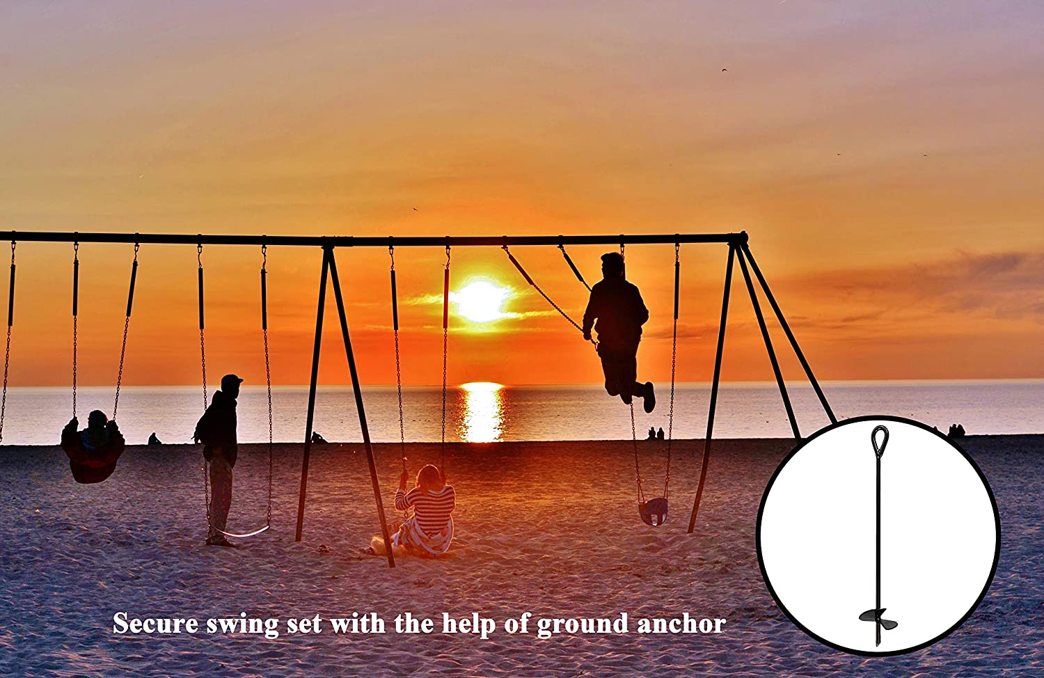 - MULTI PURPOSE: Ground Anchor can be used for multiple purposes as swing-set anchor to control tilting of swing-set, to secure swing-set in the ground, tent anchor to hold down tents to the ground, tent hooks for all sides of a tent.