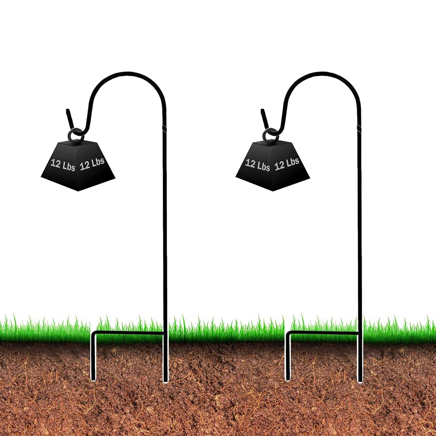 Push the shepherds hook in the ground with your foot.The glossy powder coat finish prevents rust and the black colour remains lovely. Stake the items directly into the ground and begin enjoying them immediately. |