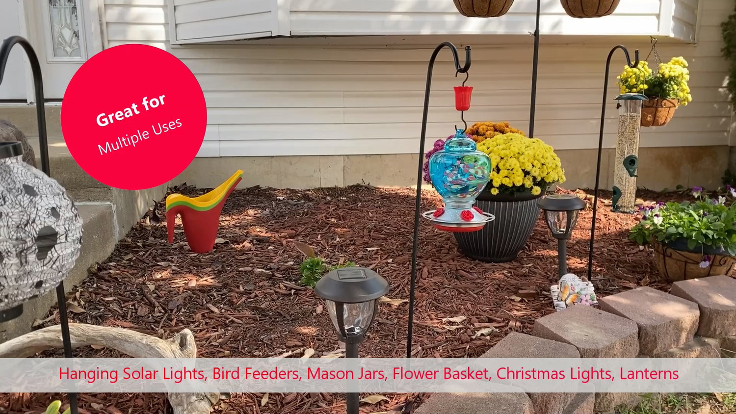 - MULTIPLE APPLICATIONS - Great for outdoor wedding aisle and ideal for hanging flower pots, Solar Lights, lanterns, flower jars, candle holders, garden lights, mason jars, holiday decorations, string lights, wind chimes, ornaments, flower balls, birdbaths, insect repellents, shooting targets, bug zapper hanger, mosquito lights, aisle markers, plant stand, and other garden decorations.