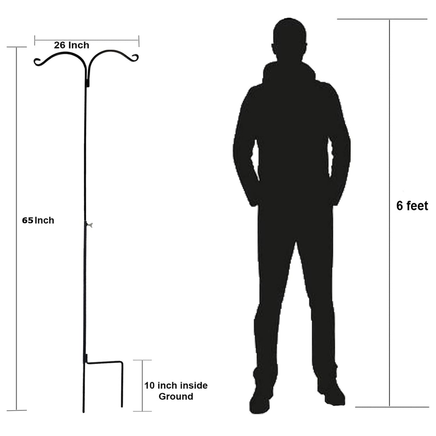 Dexterous, Sensual, and Rustic. These hooks bring a wondrous subtlety to your garden, refining and invigorating it with beauty reminiscent of Victorian grace. At 65 inches of height and 12 inches wide, these hooks provide the stability, sturdiness, and hold that can easily withstand strong winds without affecting the object hanging from them.