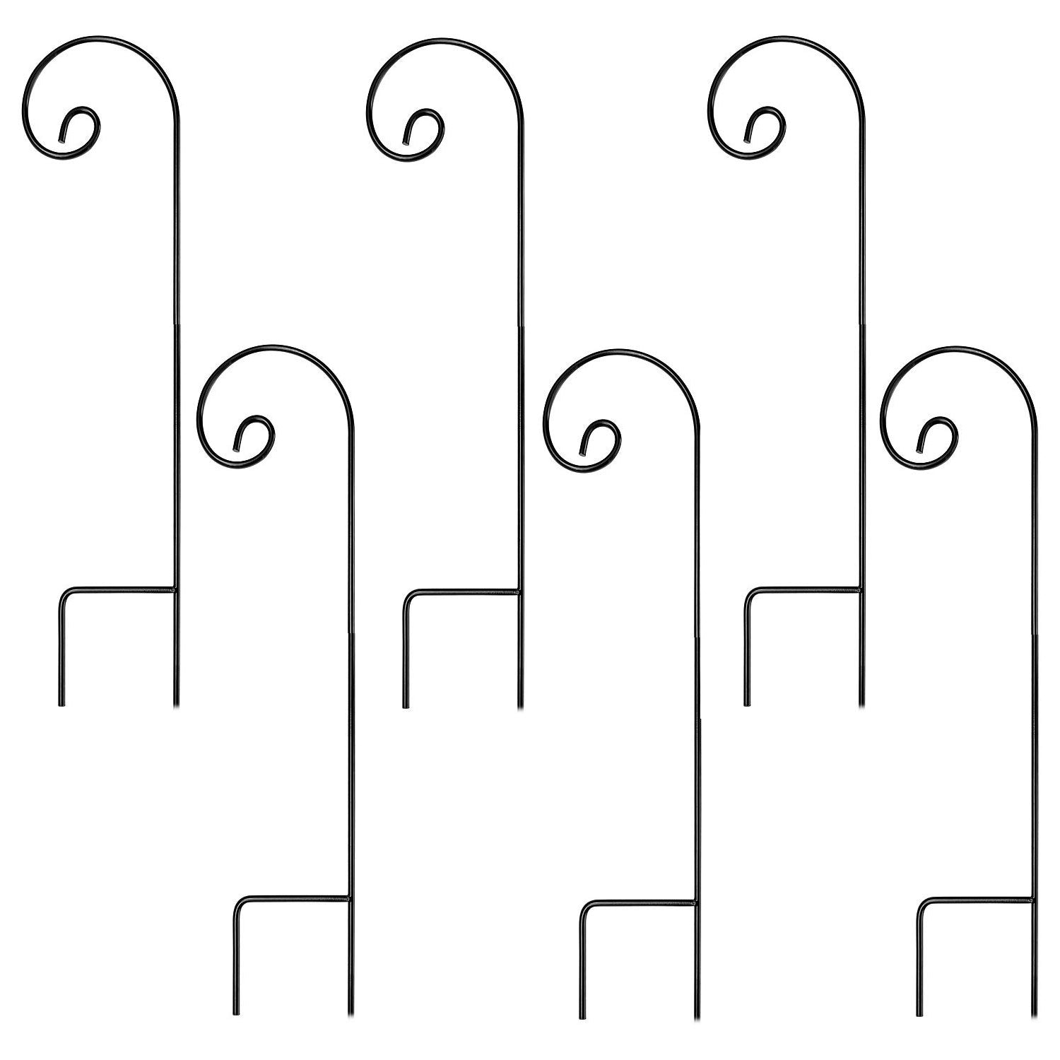 Ashman Shepherd's Hooks, Black, Made of Premium Metal for Hanging Solar Lights, Bird Feeders, Mason Jars, Garden Stakes and Weddings (6 Pack)