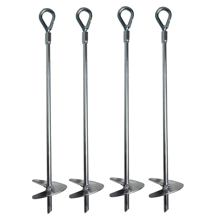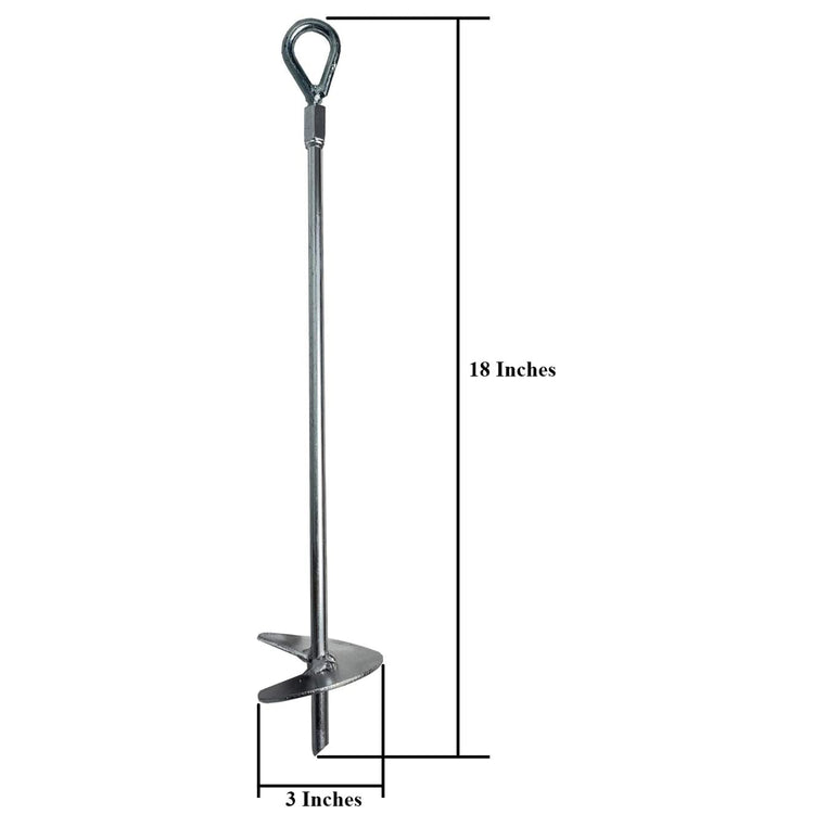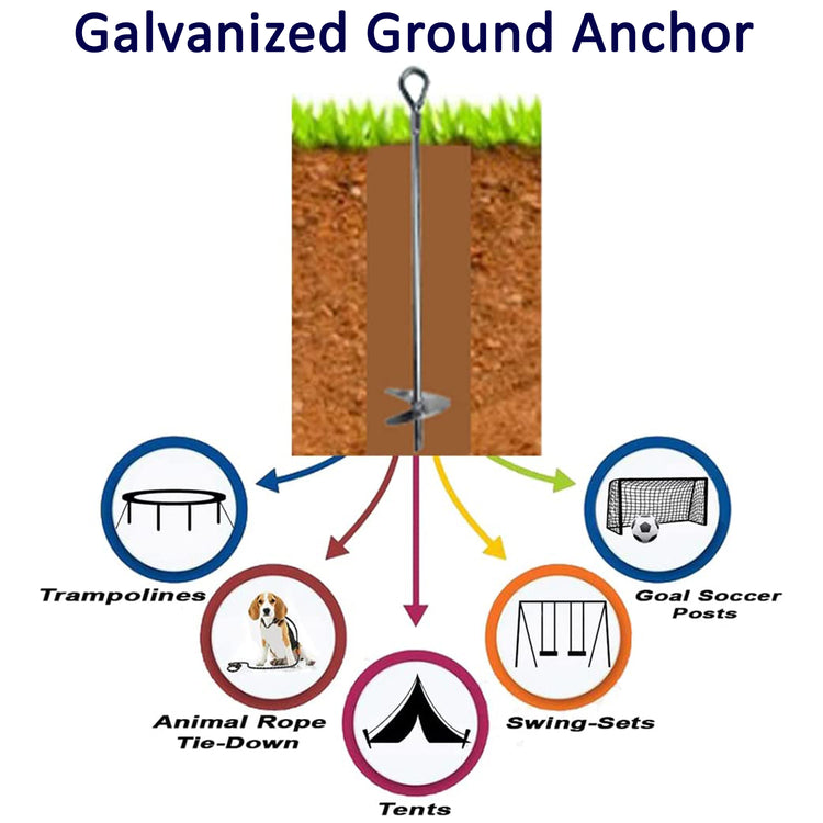 - GREAT VALUE WITH NUMEROUS USES: Package includes 4 Galvanized Ground Anchors which are 1/4 inch in diameter and 18 inches tall. The ground augers can easily be inserted in ground with help of drill machine, to have unlimited number of uses to securely tie down any structure.