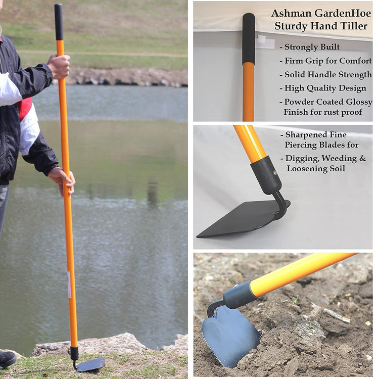 Ashman Garden Hoe (1 Pack) – Sturdy Hand Tiller – Heavy Duty blade for Digging, Loosening Soil and Weeding – Equipped with Rubber Grip Handle for a strong hold