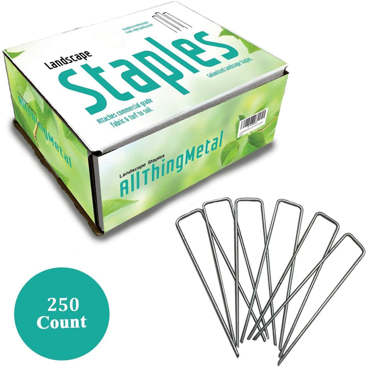 AllThingMetal Galvanized Garden Stakes Landscape Staples: 6 Inch Long Sod Staples and Fence Stakes - Rust Resistant (250 Count - Extra Heavy Duty)