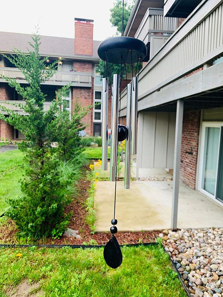 Ashman 20 inch Large Deep Tone Sympathy Silver color Wind Chimes with 5 Copper Vein Tubes - Tuned Relaxing Melody Gift Décor for Indoor and Outdoor.