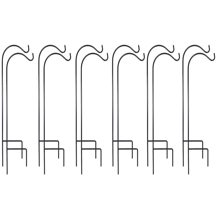 - EASE OF USE - Easy to setup and there no plastics or complex assembly involved, You will not have to screw pieces together to make this hook and simply push the shepards hook in the ground with your foot and you are ready to go. Ashman Shepherd hooks garden stakes can be used year after year as the glossy powder coat finish prevents from rust and the black color remains lovely. Stake the items directly into the ground and begin enjoying it immediately.