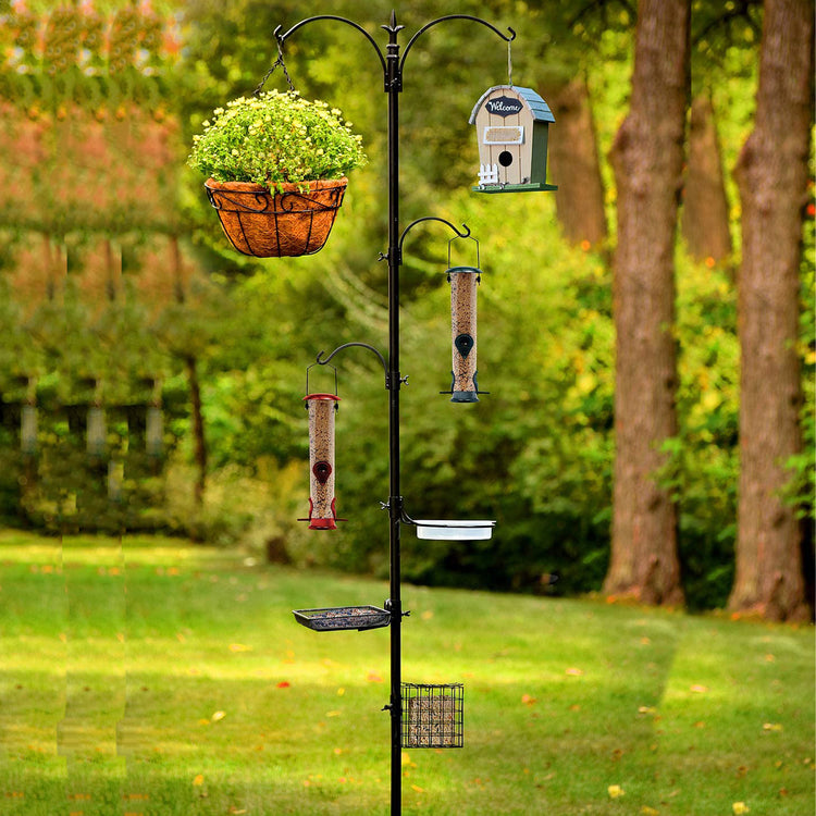 Ashman Deluxe Premium Bird Feeding Station, 22" Wide x 91" Tall with 5 Prong Base, Top Hook, Two Small Arms and Water Dish, Suet Cage Feeder.