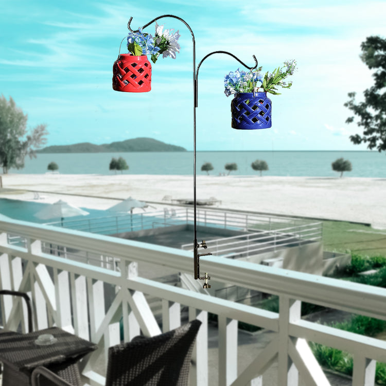 - 46-INCH HIGH AND 16 INCH WIDE PREMIUM QUALITY DECK HOOK - Intricately designed to enhance the look of your deck and garden. Ideal to fit on Decks, Railings, Patios, backyard, pool house, or any other landscaping projects that the clamp can be attached to; and if you are bored with decks then start using it on the ground!