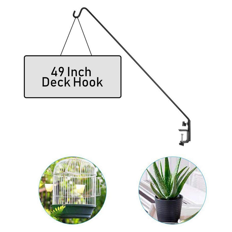 Ashman Heavy Duty Deck Hook (2 Pack) - 37 Inch Double Forged Metal Pole & Non-Slip Clamp, 360 Degree Swivel, Ideal for Bird Feeders, Lanterns