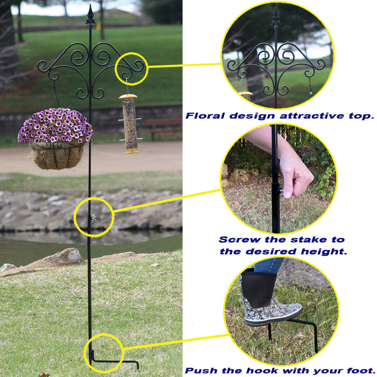 - Easy to Install: Coming in one piece of solid metal, no assemble needed can be carried around easily. Welded brace near the base to anchor the hook into the soil and keep upright.
