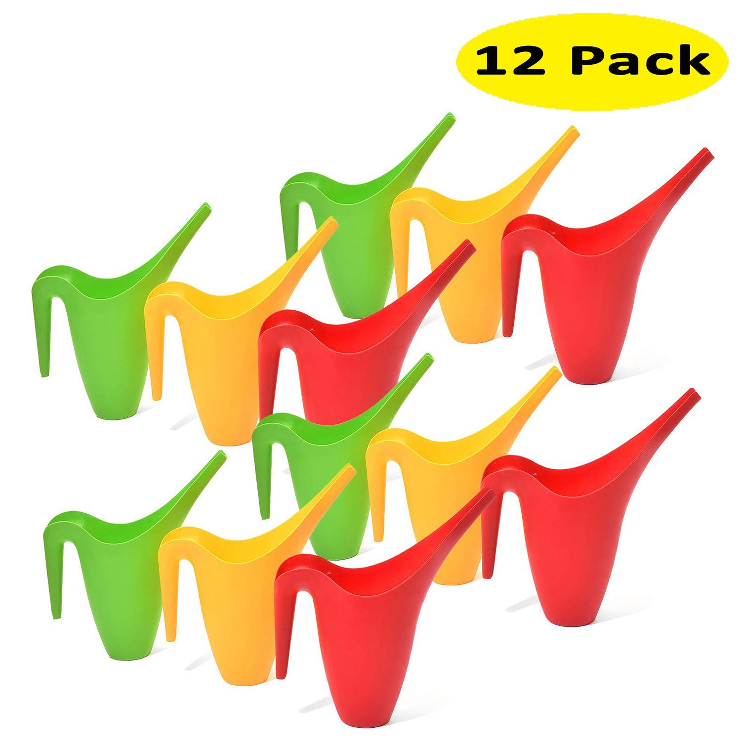 Ashman Set of 12 Watering Can, Indoor and Outdoor Use, Assorted Colors which Include Red, Green, Yellow, 2 Liter Capacity, 12 Pack