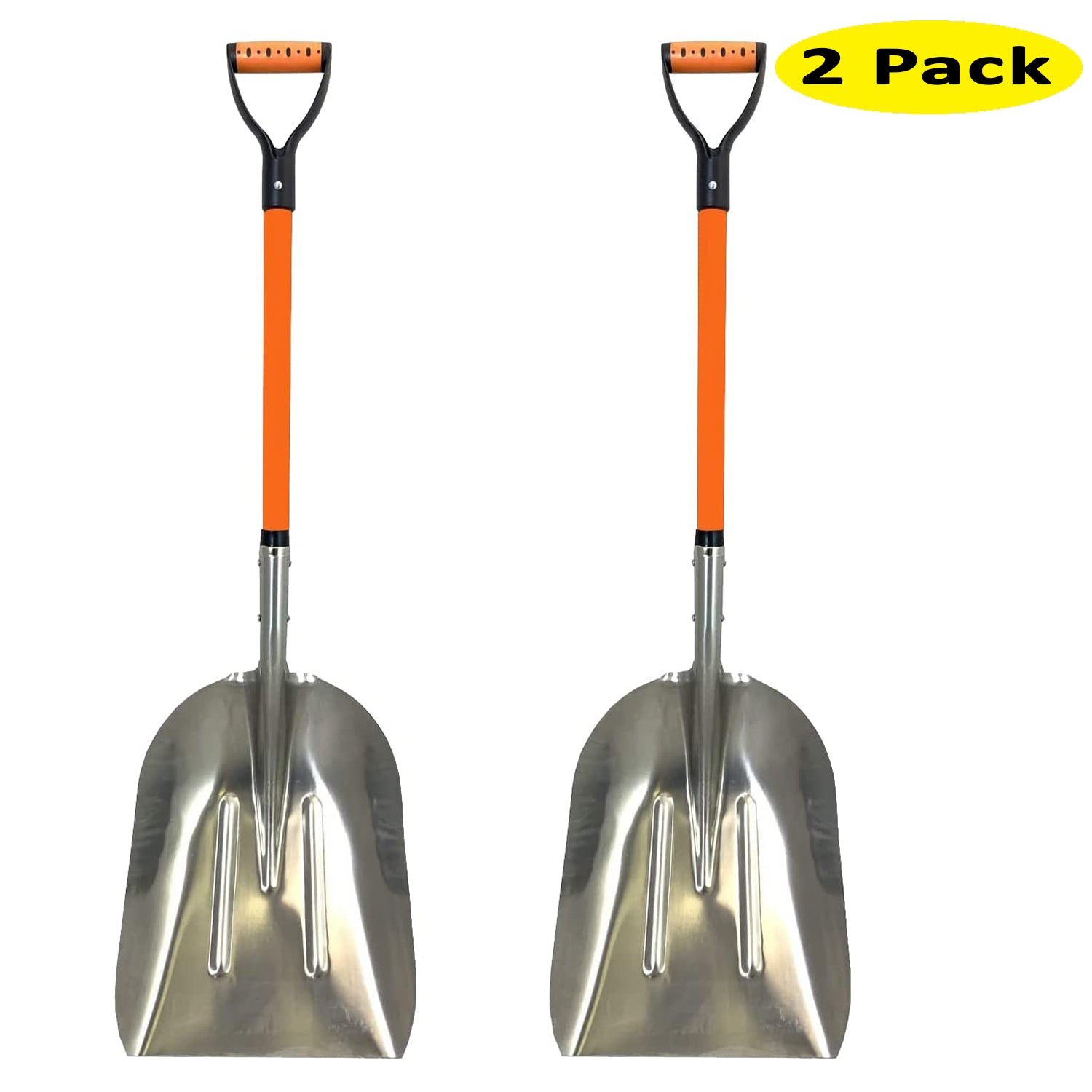 Ashman Aluminum Snow Shovel 48 Inches with Large Head and Durable Handle (2 Pack)