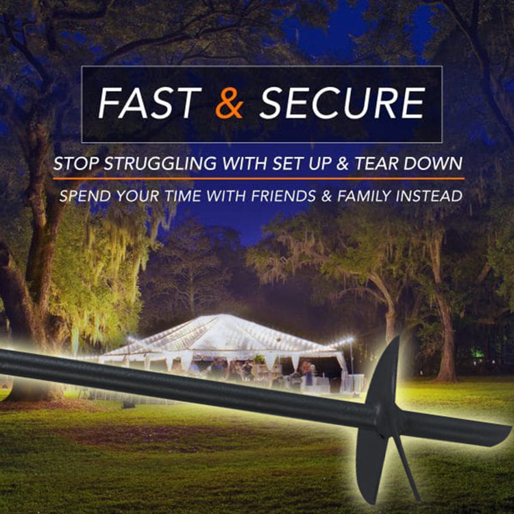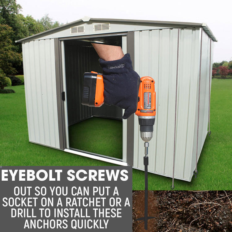 The ground augers can easily be inserted into the ground with help of a drill machine, DRILL BITS ARE NOT INCLUDED, have an unlimited number of uses to securely tie down any structure. The Ground Anchors can secure fixtures and excel at tying down the tarmac, sheds, buildings as temporary or permanent solutions. They are hard-wearing, durable, and long-lasting year after year. They are extremely versatile.