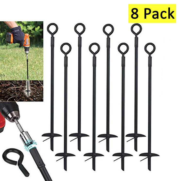 - SOLID METAL ANCHORS TO BE USED WITH 17MM SOCKET ON DRILL MACHINE: Great construction on these strong ground anchors which have a thick black powder coating. The ground anchors are rust-resistant and made of solid premium metal and will last for several years to come.