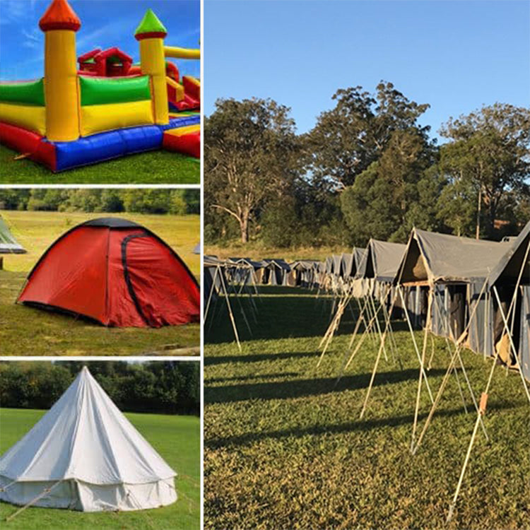 Tie down anything to the ground and make it secure. Strong Ground Anchors and Augers which you can re-use over and over again.