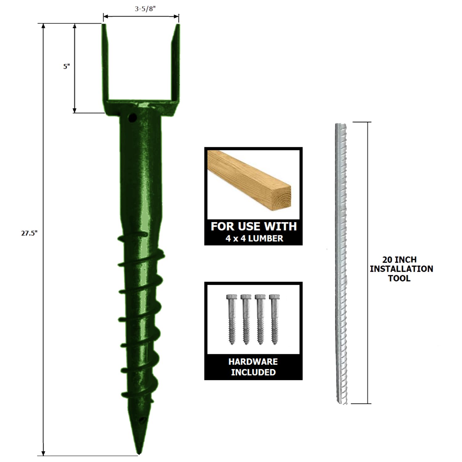 Dependably Accommodates 4x4 Posts: Accommodates a standard 4x4 wood post (POST NOT INCLUDED). Securely holds any 4x4 post and Great for any 4x4 post (mail box post, fence, etc.). And the Hardware Includes tightening rod and 6 lag bolts (use two bolts on one side and three on the other).