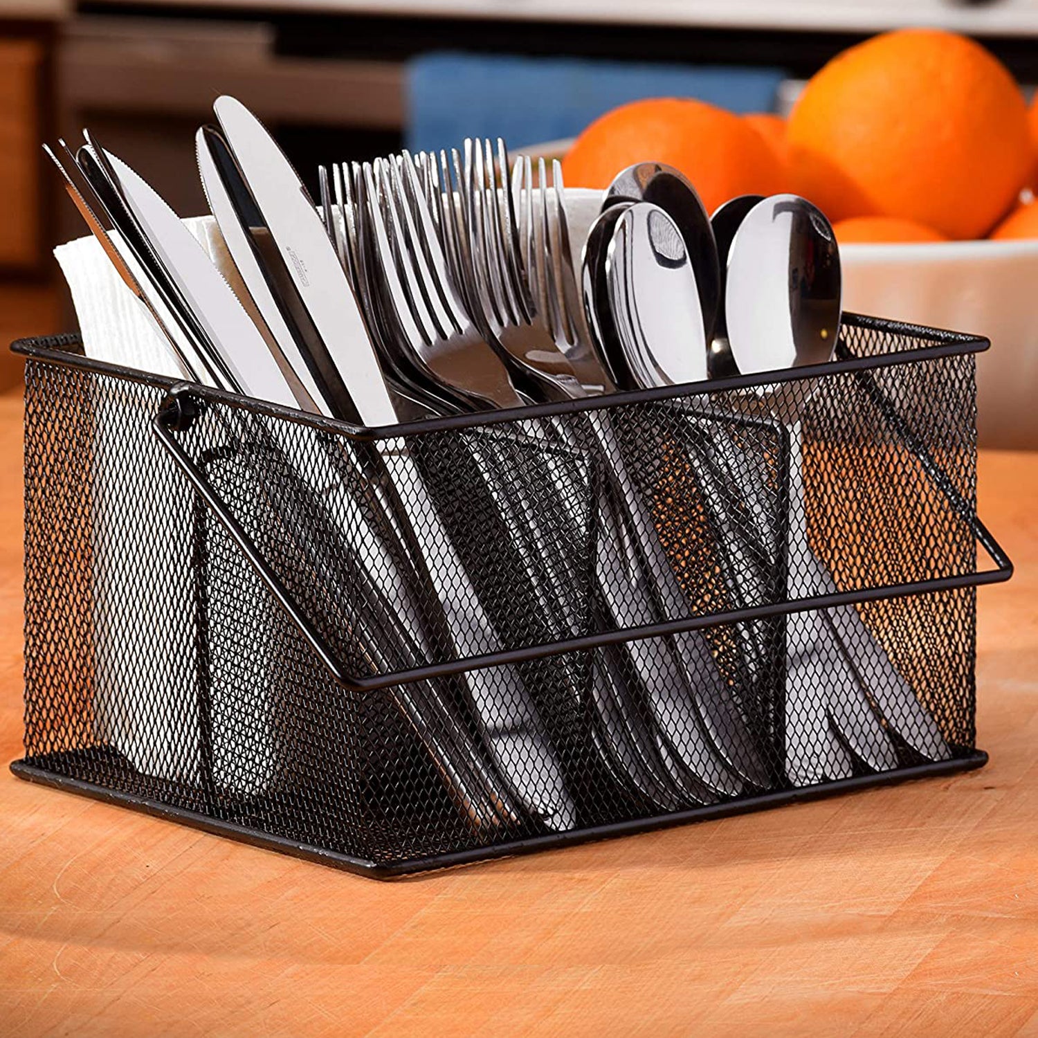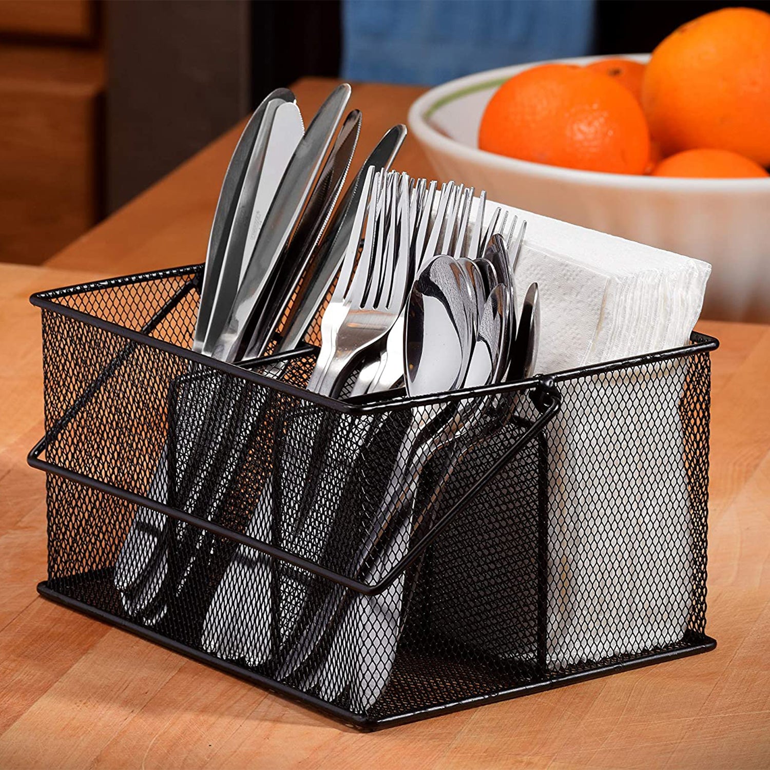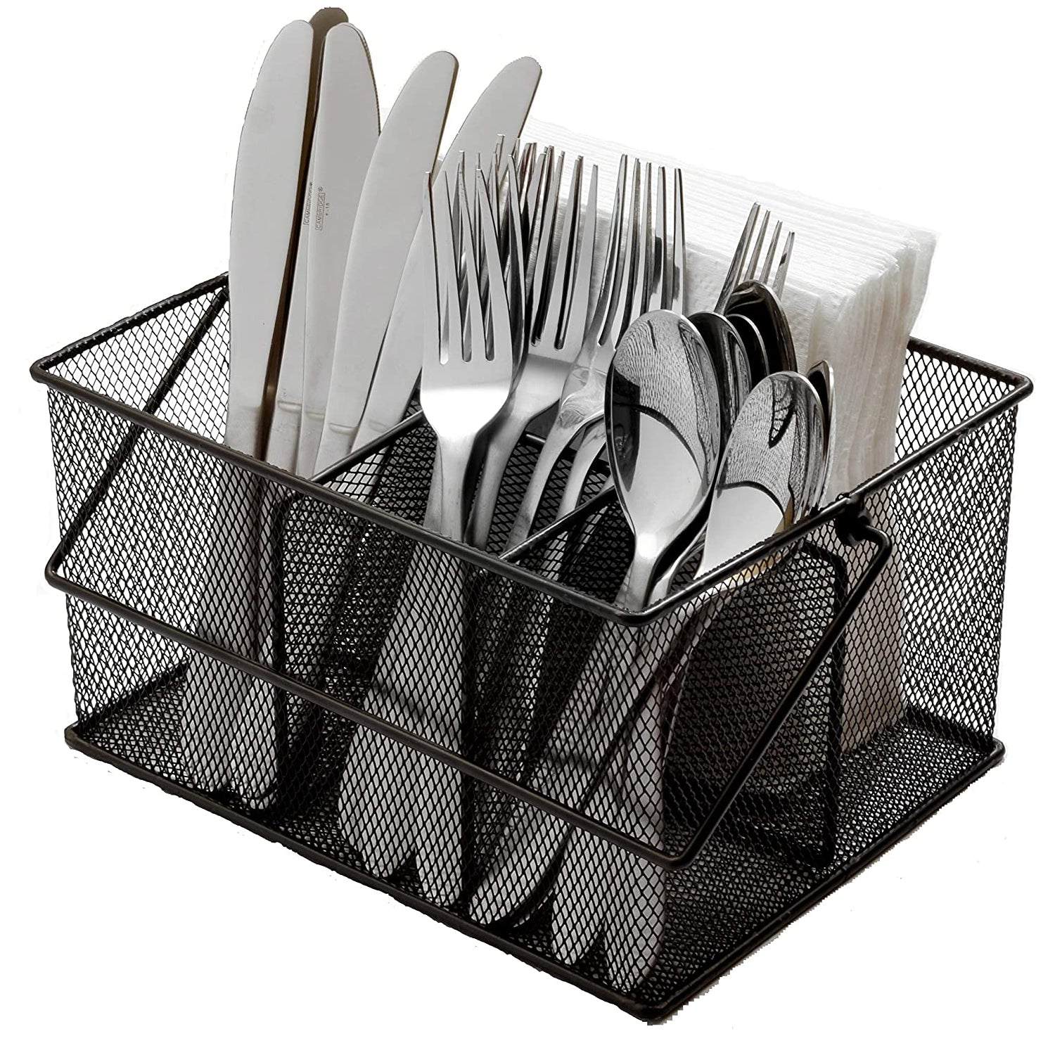 - PERFECT UTENSIL CADDY - Impress and entertain your guests with an organized silverware caddy - built with four compartments to organize various cutlery, condiments, and napkins.