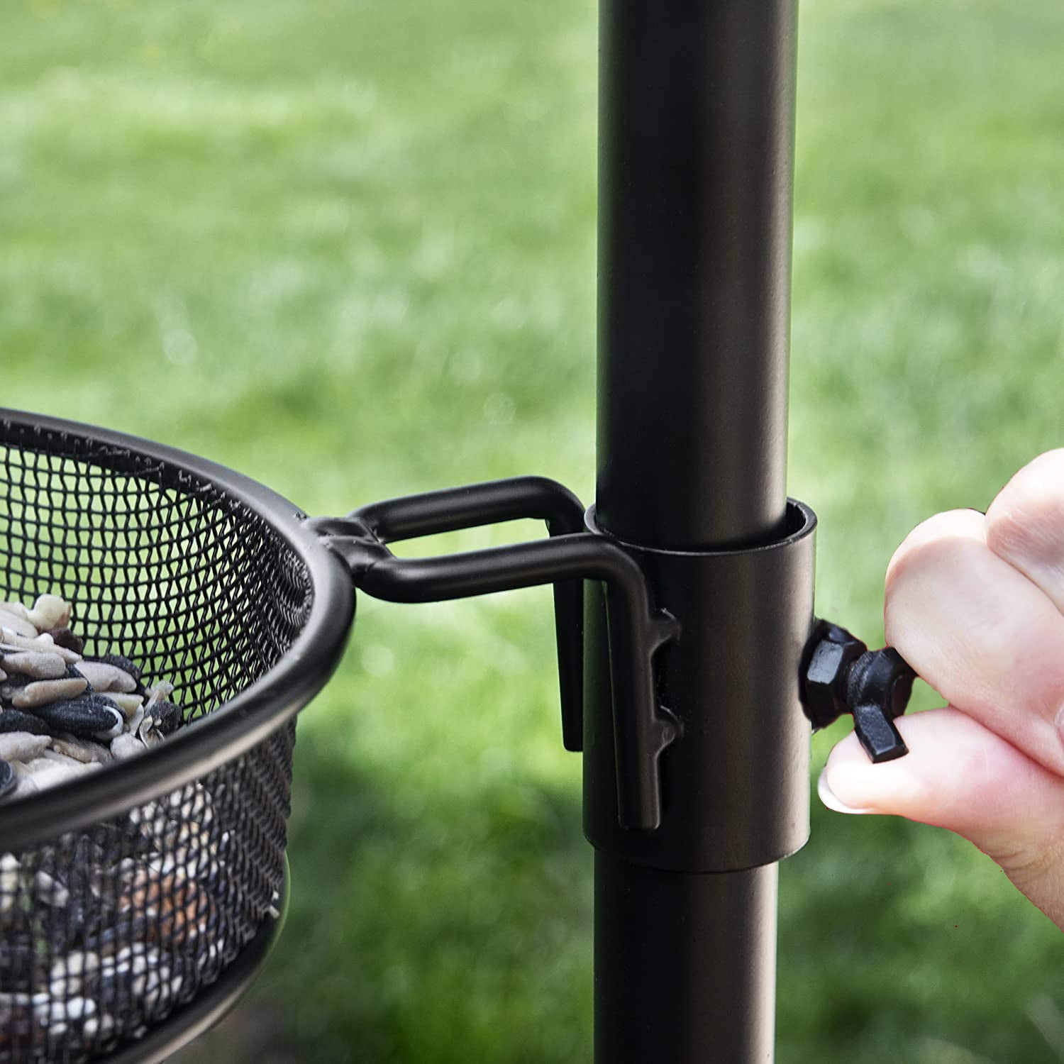 - Twin top-level hooks are great for hanging hopper, tube, and nyjer feeders which are effective in attracting smaller birds like finches, chickadees, titmice, and sparrows.